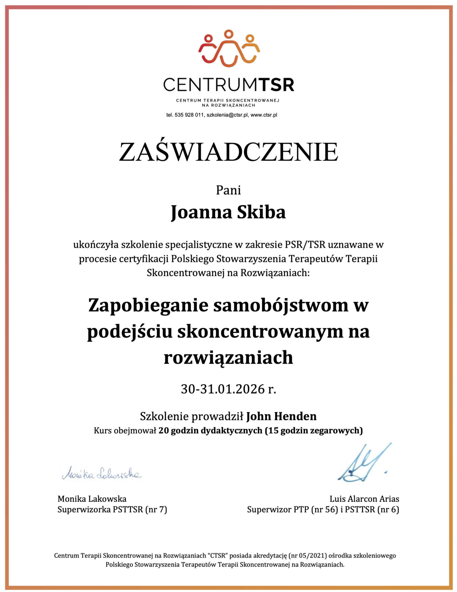 - Certyfikowany Konsultant Kryzysowy. Instytut Pozytywnej Terapii Kryzysu.